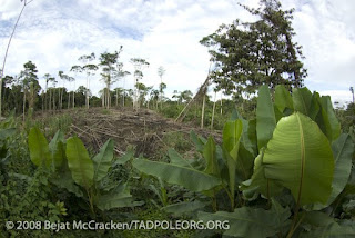 Shawn's new assistant Kenny arrived from Florida. He is a riot, I can tell already that we are all going to have a wonderful adventure together. Although he does not speak Spanish, he gets by and managed to get himself to Coca. Shawn took a day and traveled to Coca to retrieve him from the airport. Alfredo and I went out looking for bromeliads on the road to Pindo. We made it to a town called Santa Rosa where we turned off the main road onto a muddy less traveled road leading us to the Rio Tiputini. We climbed up muddy hillsides looking far beyond the reaches of our binoculars across the Rio Tiputini. Even using our cameras to photograph trees, zooming in on the photos to determine the species of bromeliads. Unbelievably no Achemea zebrina. We were quite far out on this road and it was getting late so we had to walk as quickly as possible to catch transportation back to town. If not we would be returning shortly before midnight without any light. I think we caught the last ride possible with a petrolera that was exceptionally talkative. He told us about his family, his experience traveling in Spain and his work. He spoke so quickly it was very difficult to understand him and all I could do was listen intently and ask Alfredo for some translation every so often when he took a moment to breath.